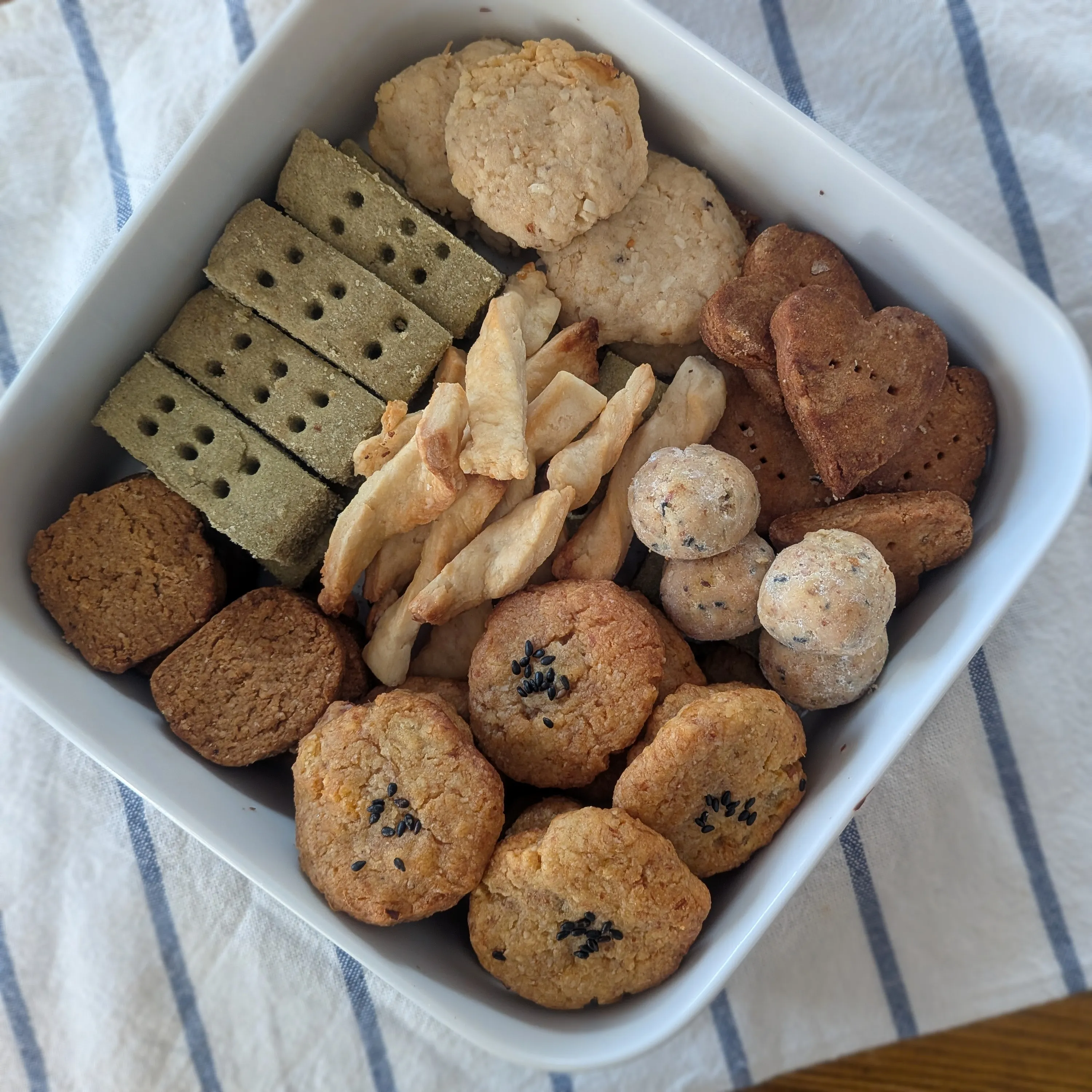 さつまいもクッキー、紅茶スノーボール、ピーナツバタークッキー、レモンココナッツクッキー、プロテインショートブレッド、酒粕クラッカー、黒ゴマきな粉クッキー