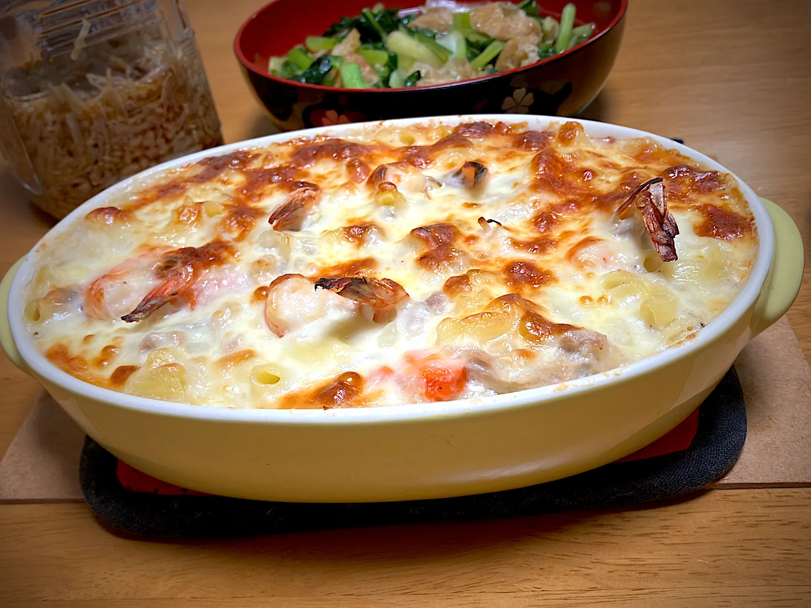 #簡単グラタン風 #地産地消 #節約料理 #節約料理 #簡単料理 #無料食材 #旬の食材#バナメイエビ#マカロニ#シチューのグラタン風#モッツァレラチーズ