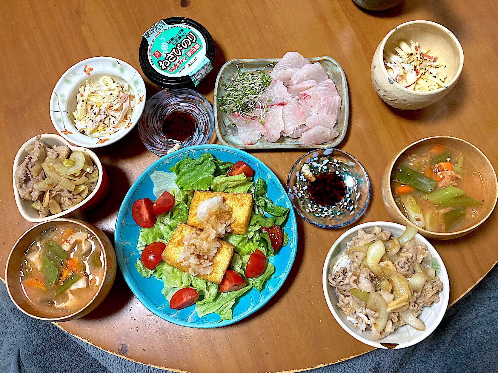 スタミナ豚炒めと雑穀米ご飯のはずが、→思いつきで丼に変更しちゃったから、
