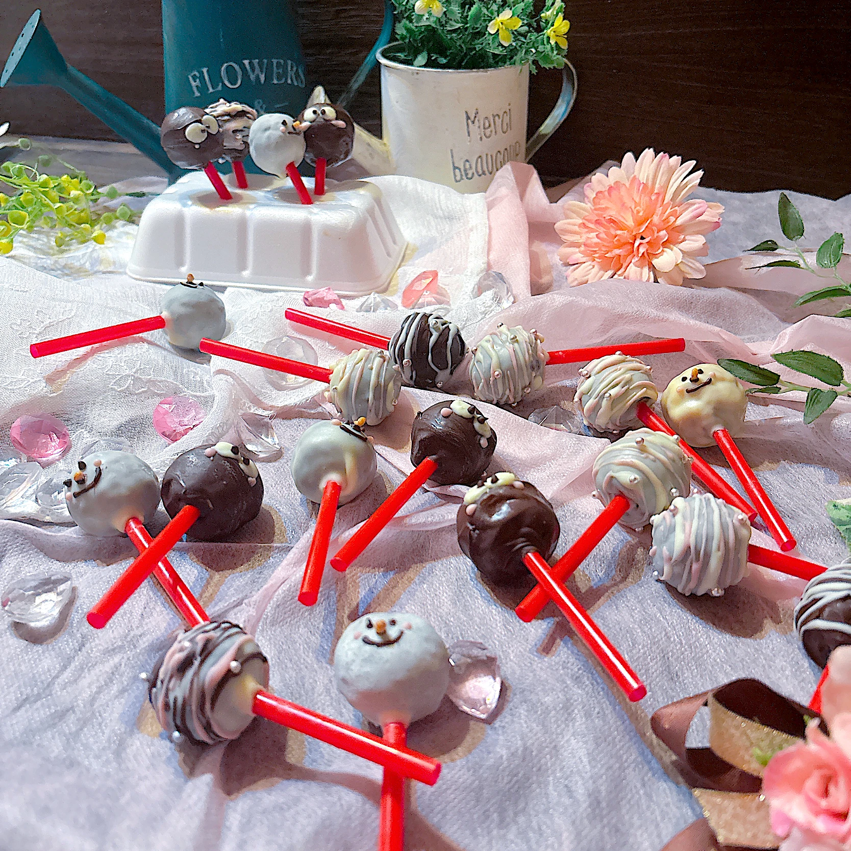 2種のスポンジ生地を丸めて チョコレートコーチングした ポップチョコ