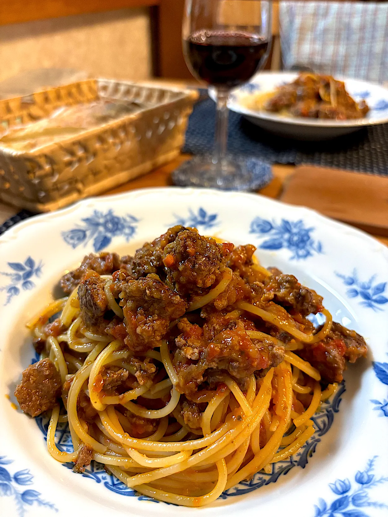 焼き目のついたゴロゴロひき肉は香りが良くてサイコー。