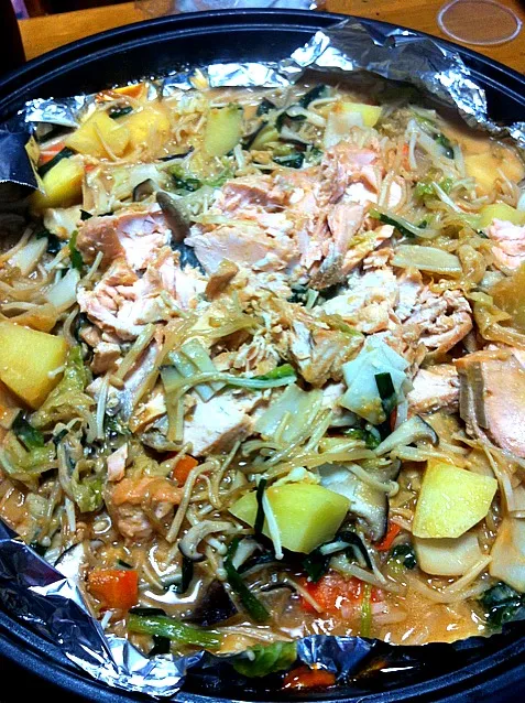トマト味噌で鮭のちゃんちゃん焼き風🐟🍅