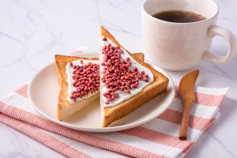 食感が楽しい♪いちごのパフとクリーミーなマスカルポーネのデザートトーストです。