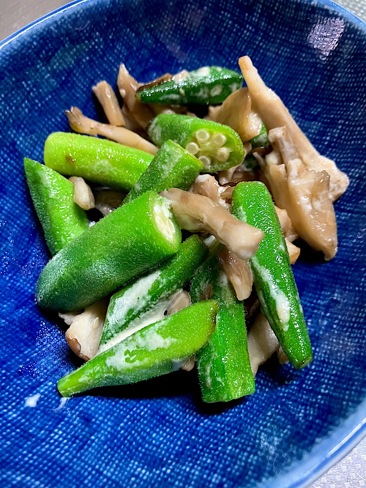 オクラと舞茸のオイスターマヨ炒め