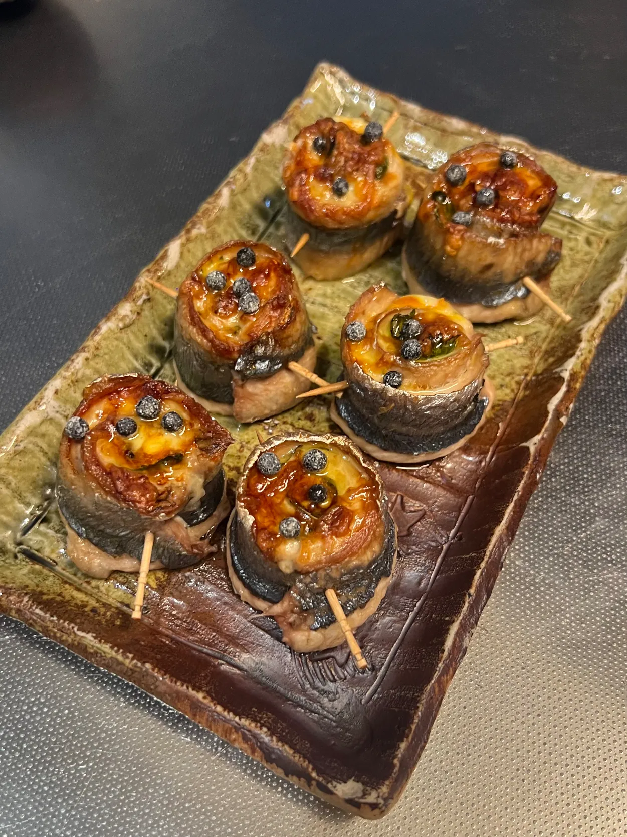 秋刀魚と大葉にチーズ、仕上げに生の黒胡椒添えて