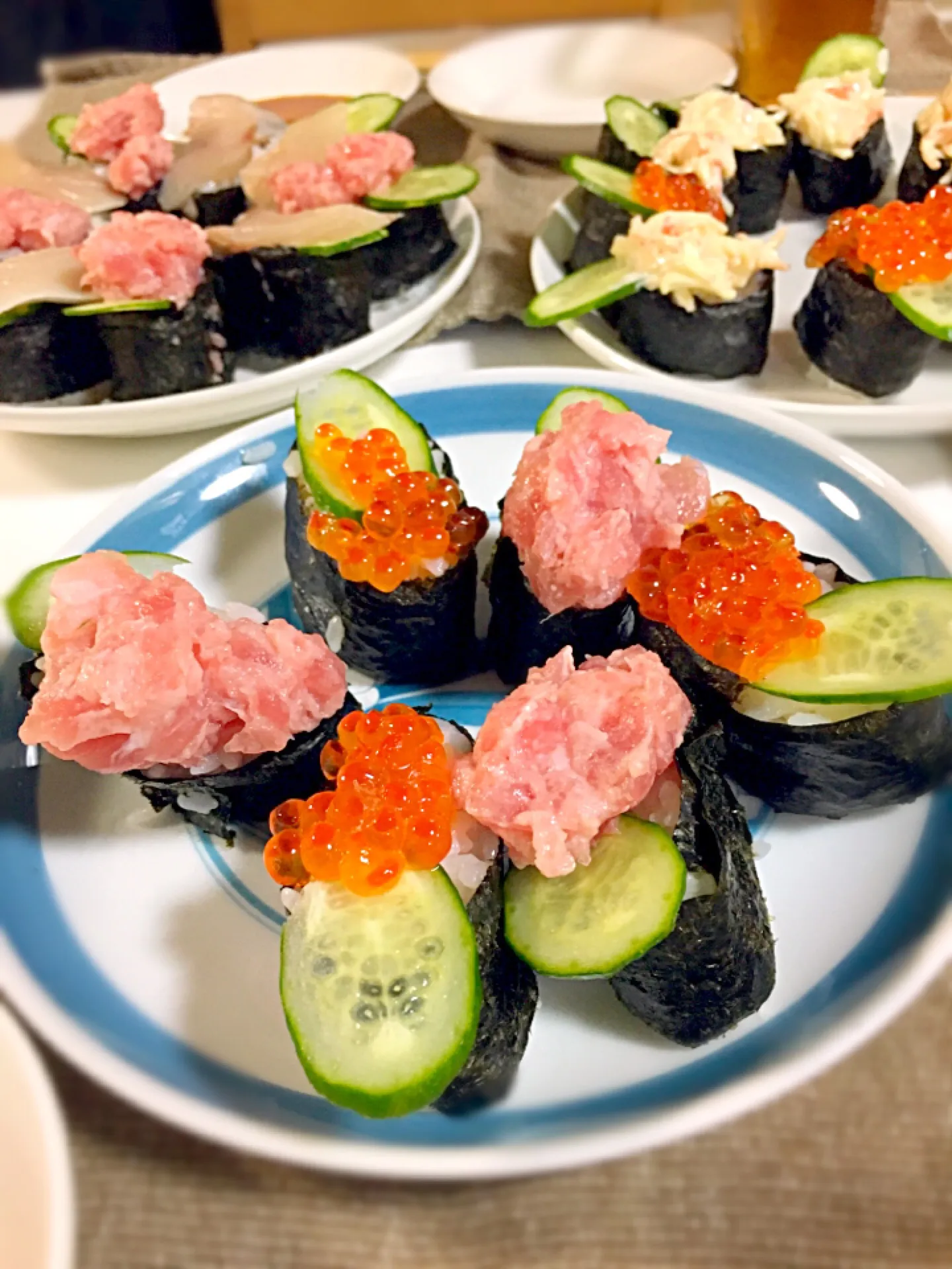 息子お手製軍艦巻き😊🍣