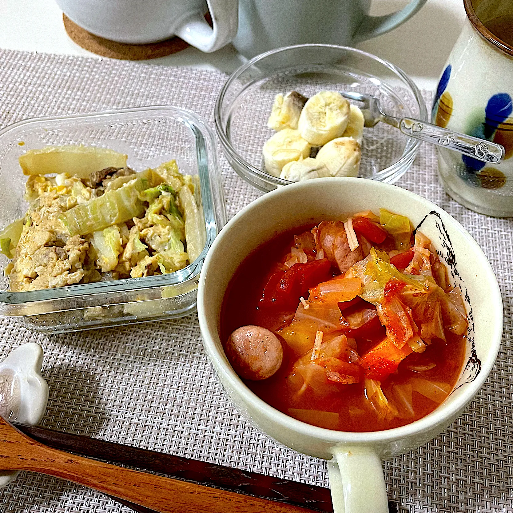 白菜の卵とじが写ってますが多かったので昼に回しました。