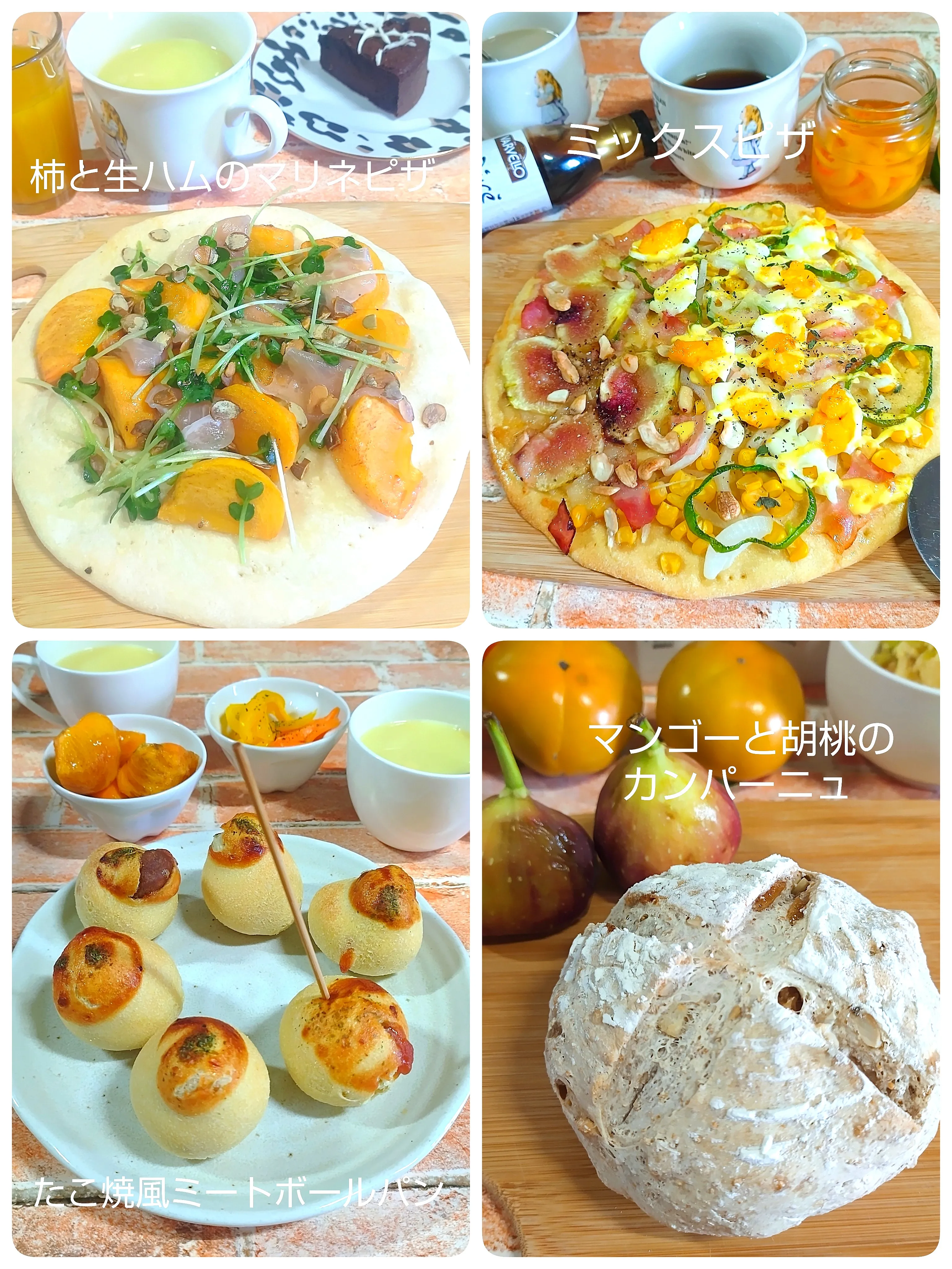 柿と生ハムのマリネピザとマンゴーと胡桃のカンパーニュは私の一人飯です🎵