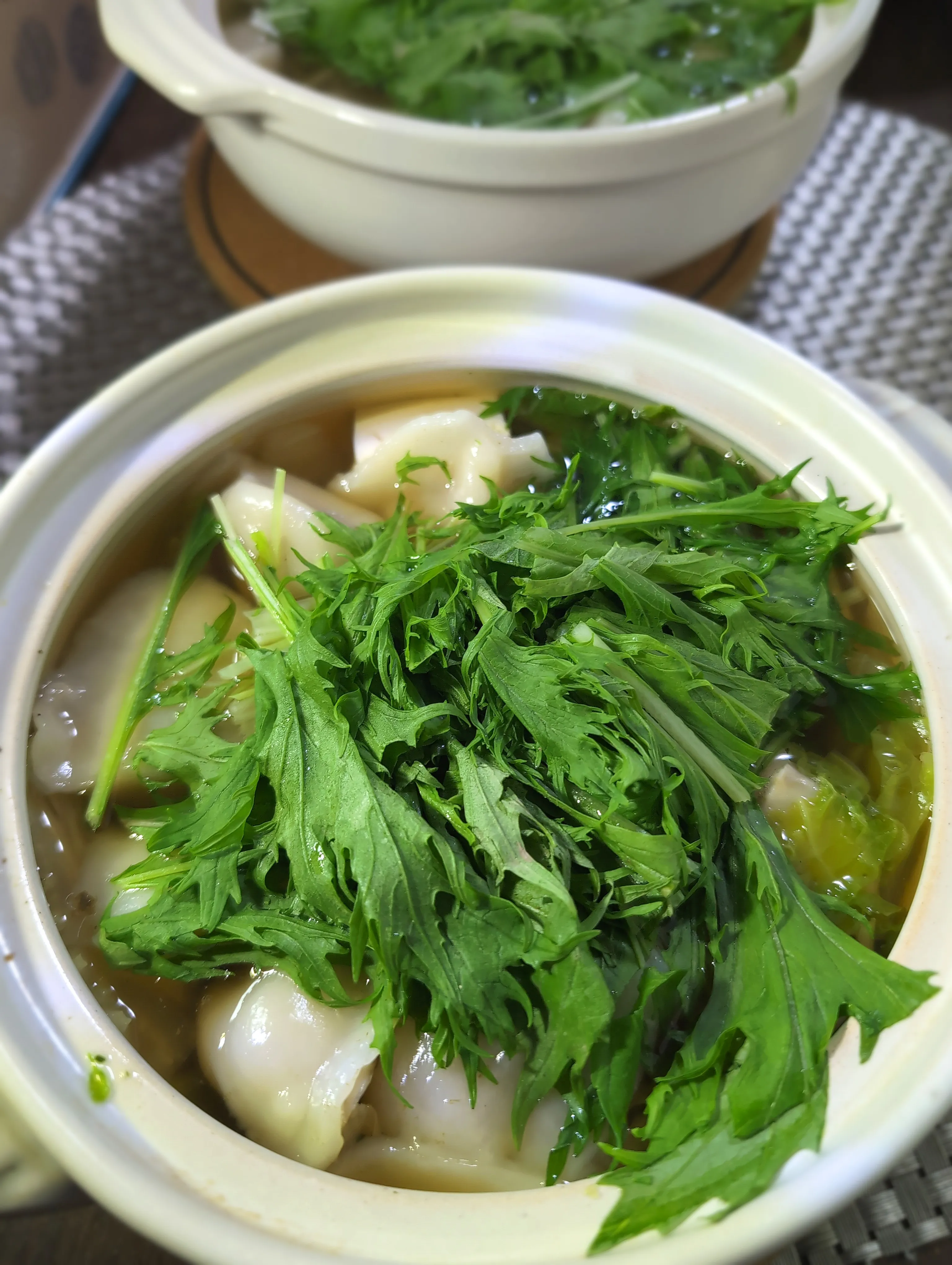 今夜は鶏団子鍋🍲後から水餃子投入🥟