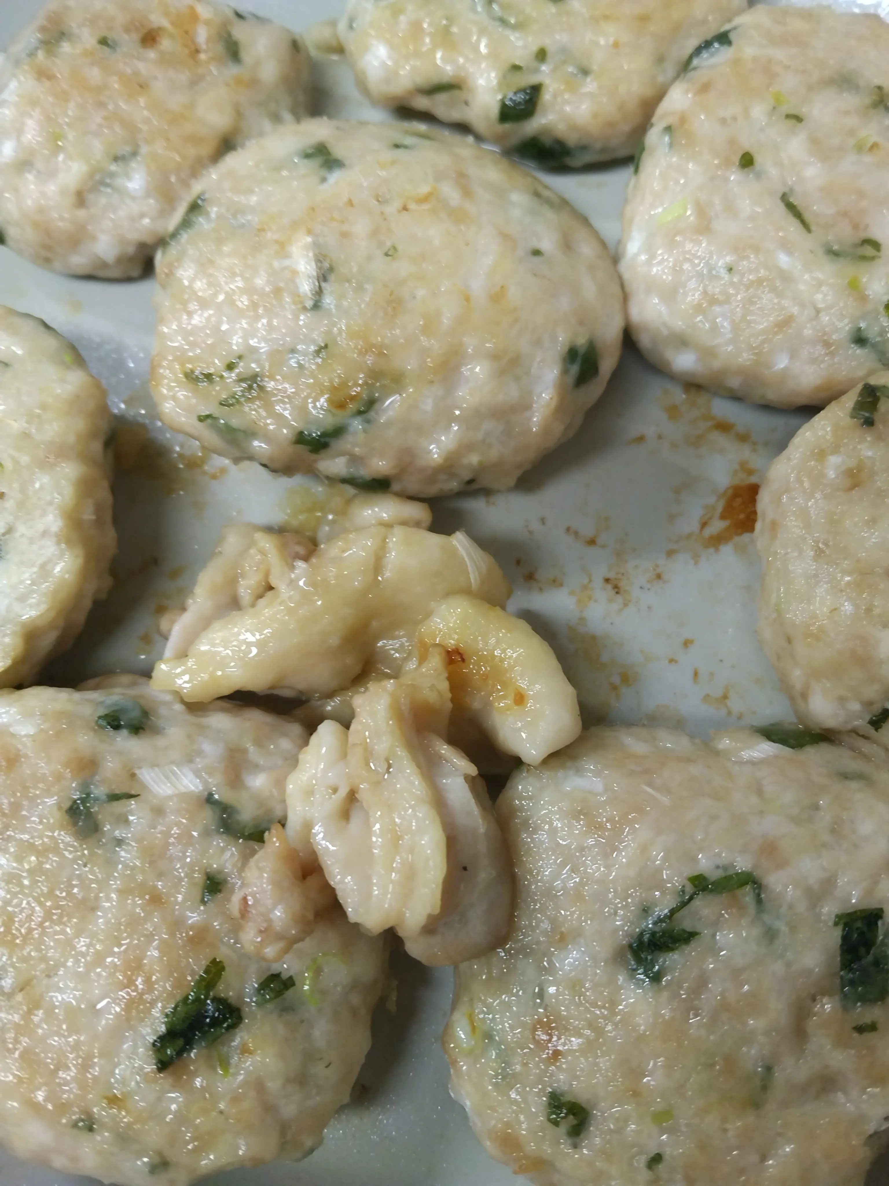 大葉入りつくね(よだれ鶏て切り取った脂と皮で焼きました😽