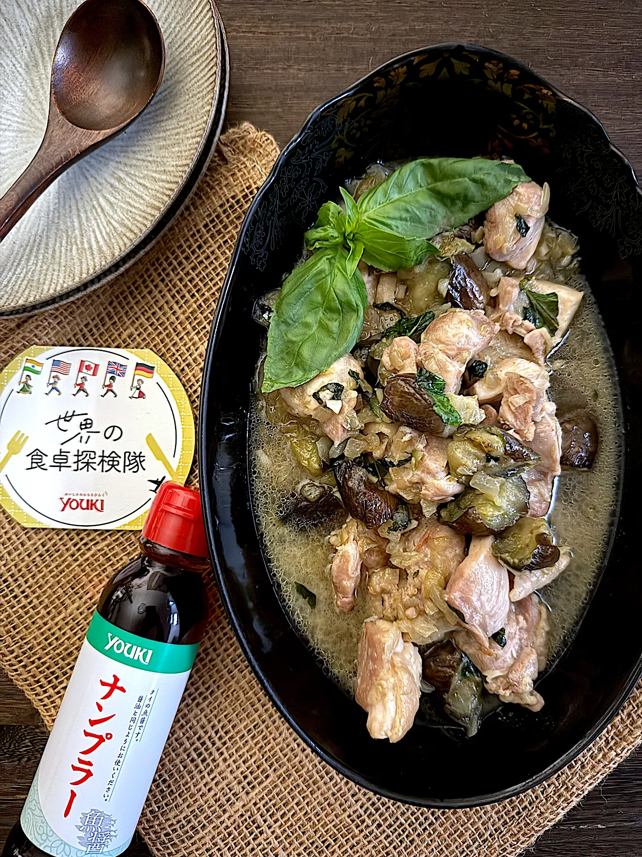 くたっとした茄子🍆にぷりっと柔らかそうな鶏肉🤤茄子に鶏だしやナンプラーの味がめっちゃ染み込んでそうで噛む度にじゅわる茄子に悶絶しそう(\\\´д`\\\) ハフーン💕