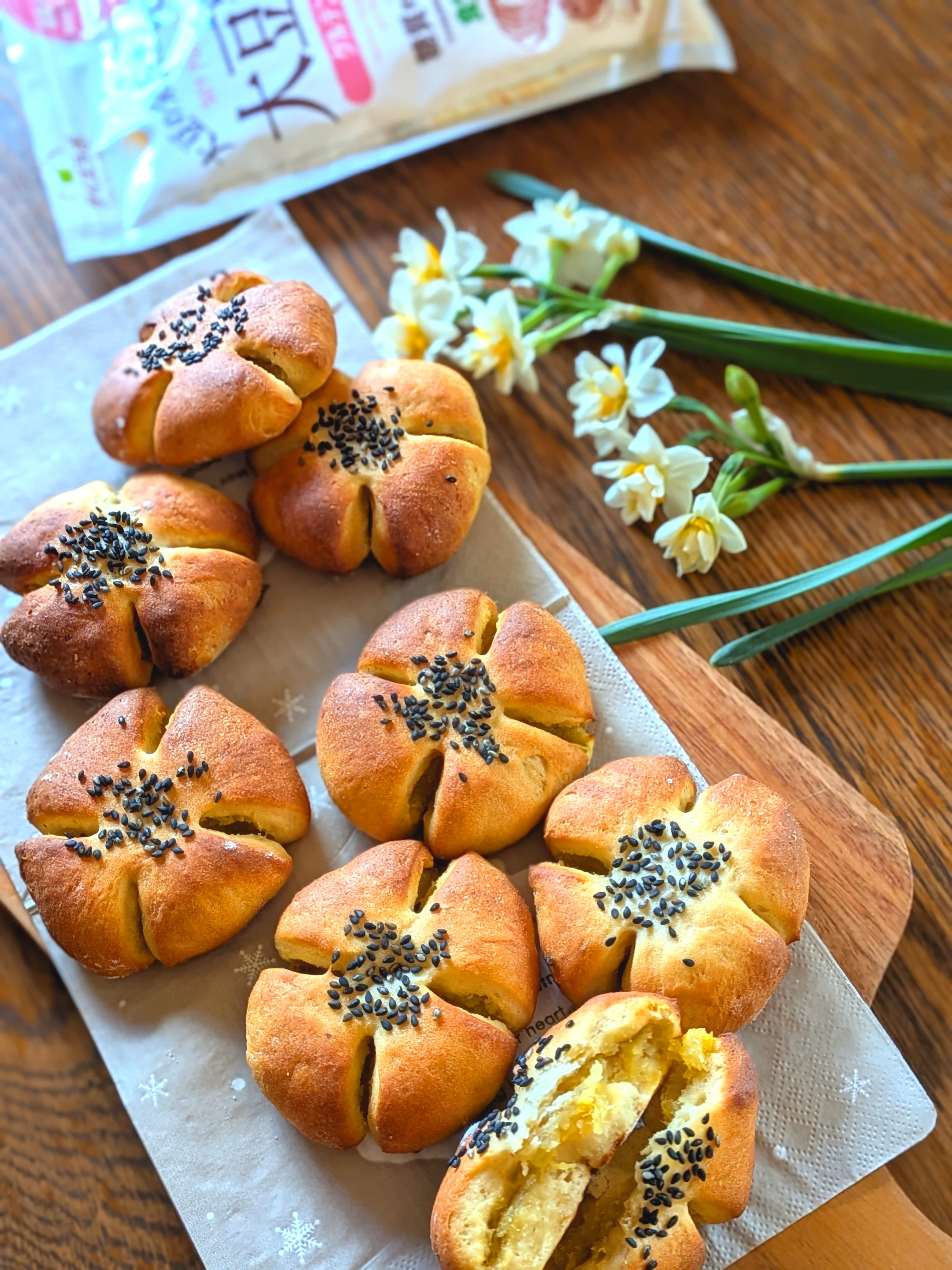 🍠餡パンお花みたいで可愛く焼き上がりましたね✨