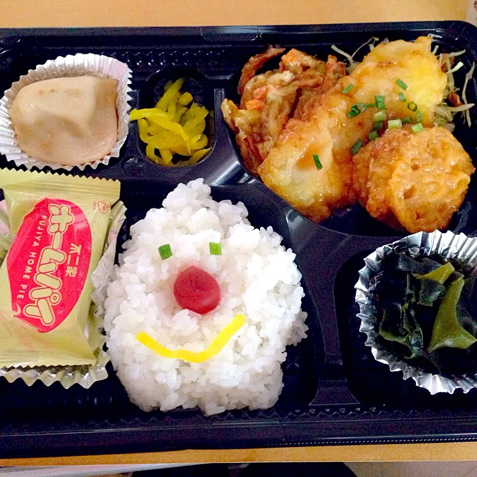 今日のニコ弁!!ご飯半分でお菓子付き!(笑) #nikoben 350円!