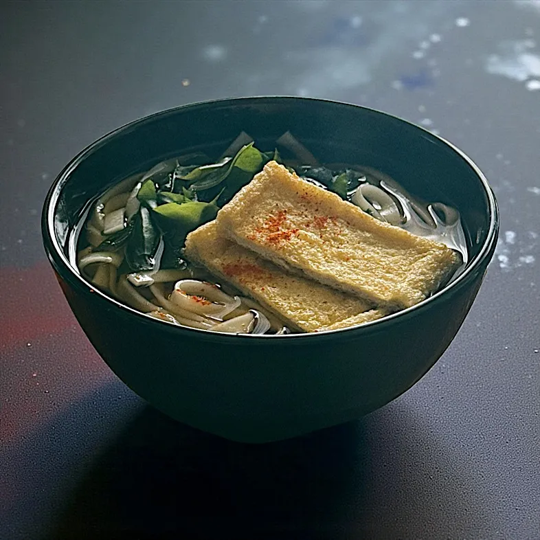 乾燥ワカメ、油揚げ、一味唐辛子、をトッピング。