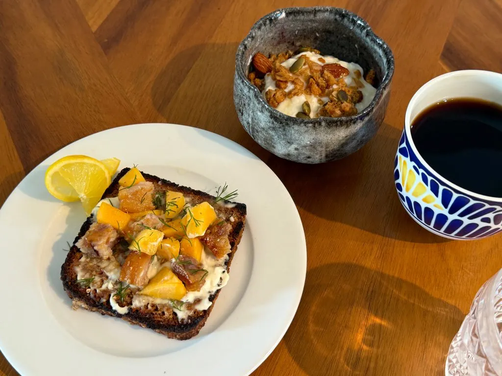 パンはイイダベーカリーのロブロ。サワークリーム、ディル、蜂蜜をかけて #簡単料理 #美容/ダイエット