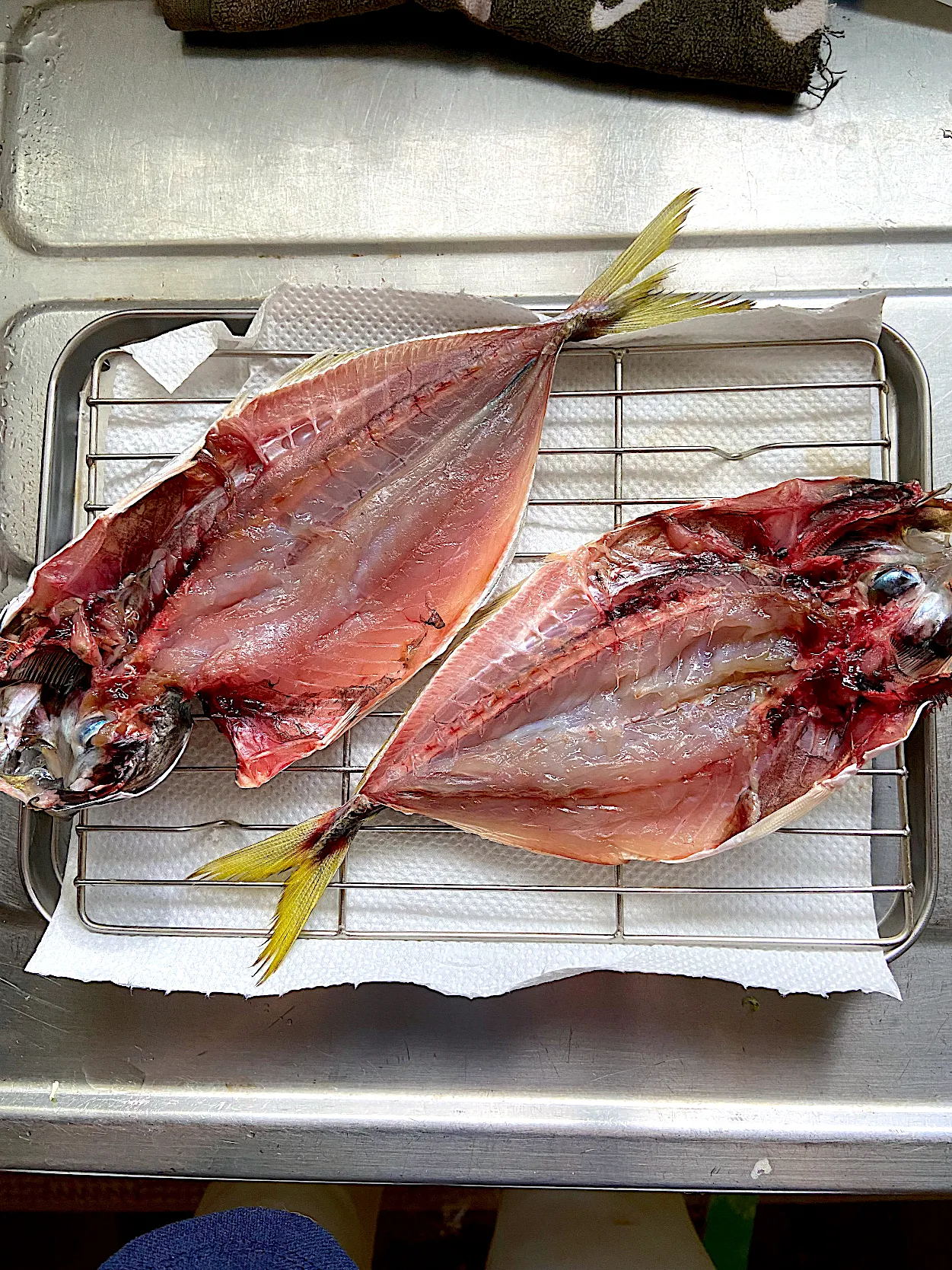 開いて海水くらいの塩水に浸けたら冷蔵庫で3日干し