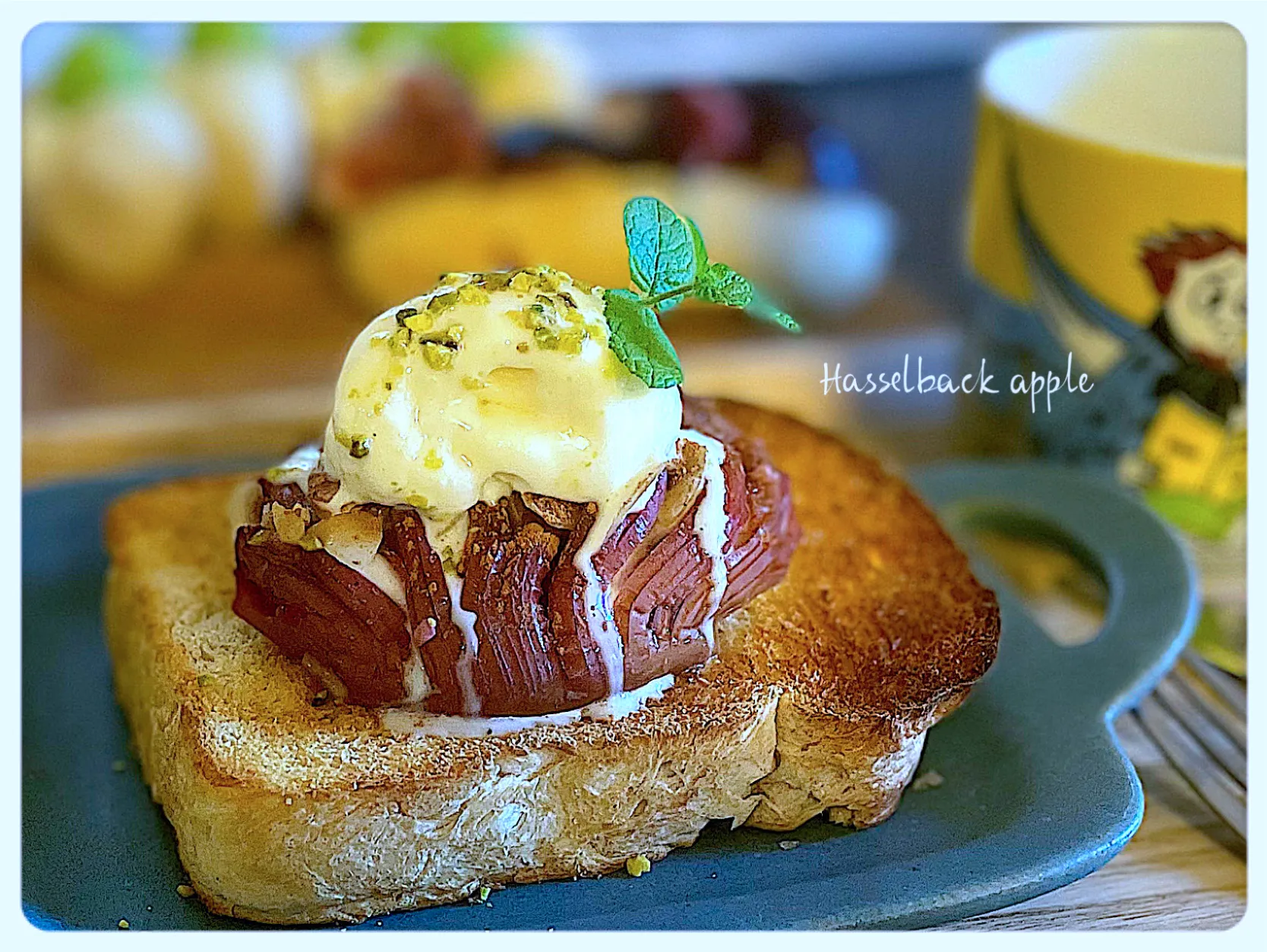 トーストしたパン🍞に、ハッセルバックアップル🍎とバニラアイスをON