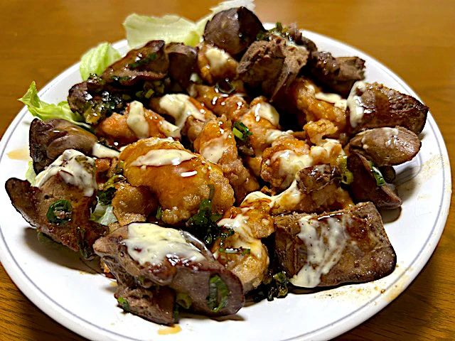 🐓肝の塩焼きと唐揚げ❗️( ^ω^ )✨