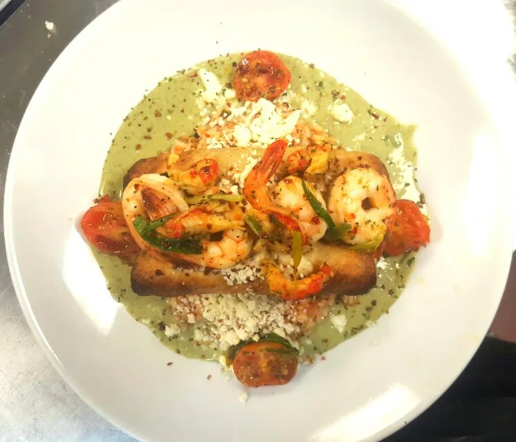 Chicken enchiladas with a seafood sauce !