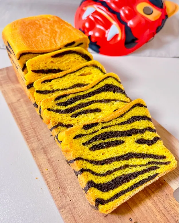 交互に重ねて一斤型で焼きました🖤💛