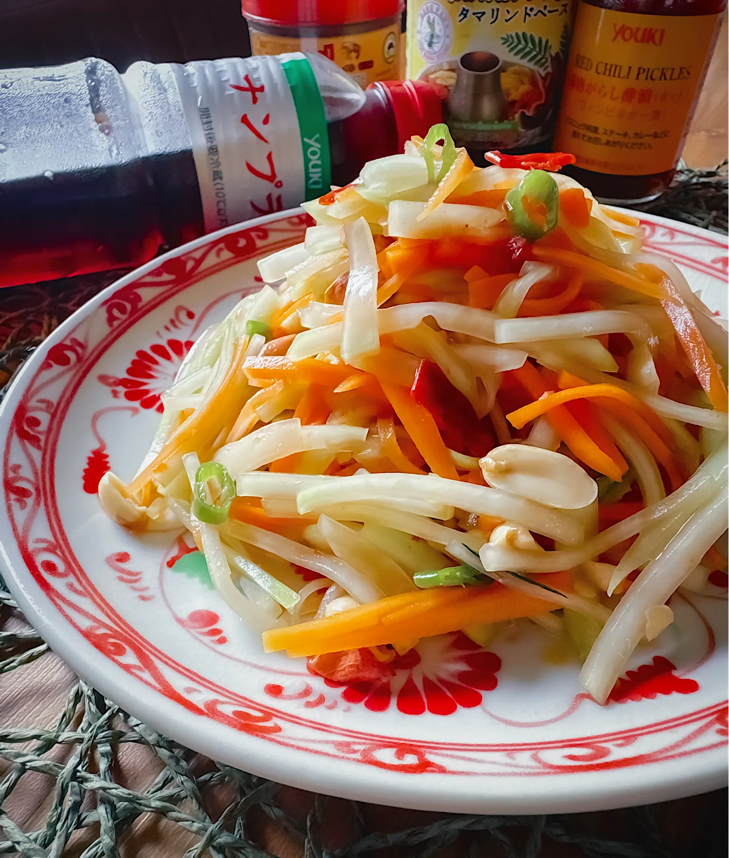 探検隊の時は、ズッキーニで作ったけど、青パパイヤはもぎゅっと、ポリっとが介在したしっかりした噛みごたえがあって、それをもぎゅポリしてると、日本にはない独特のアジアンな風味と味わいが口に広がっていつまでももぎゅポリしてたくなる(*¯ч¯*)💕青パパイヤの噛みごたえあってこそやとあらためて感じる美味さや🤤