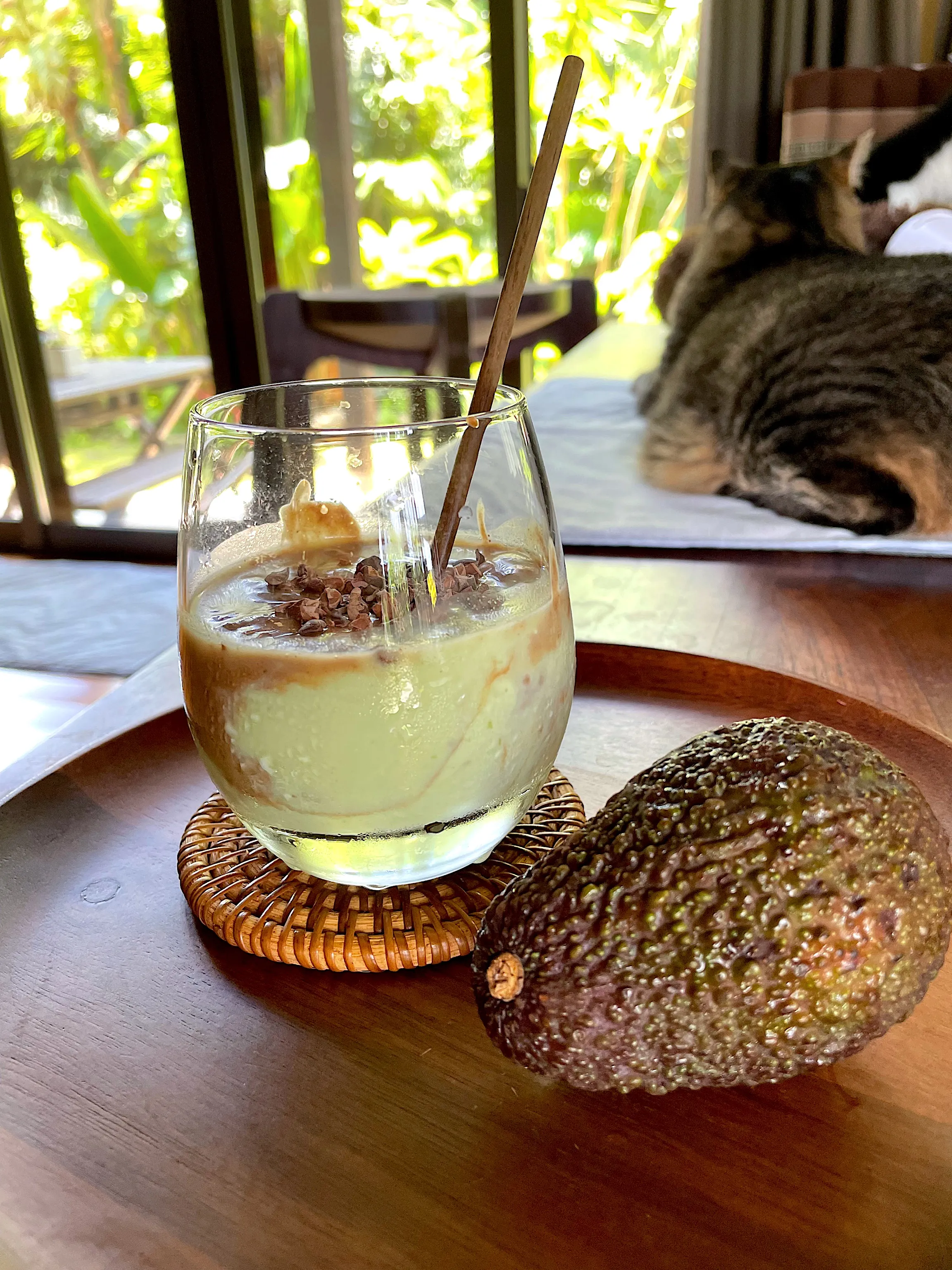 アボカドと豆乳ヨーグルトにカカオパウダー+デーツ🌱