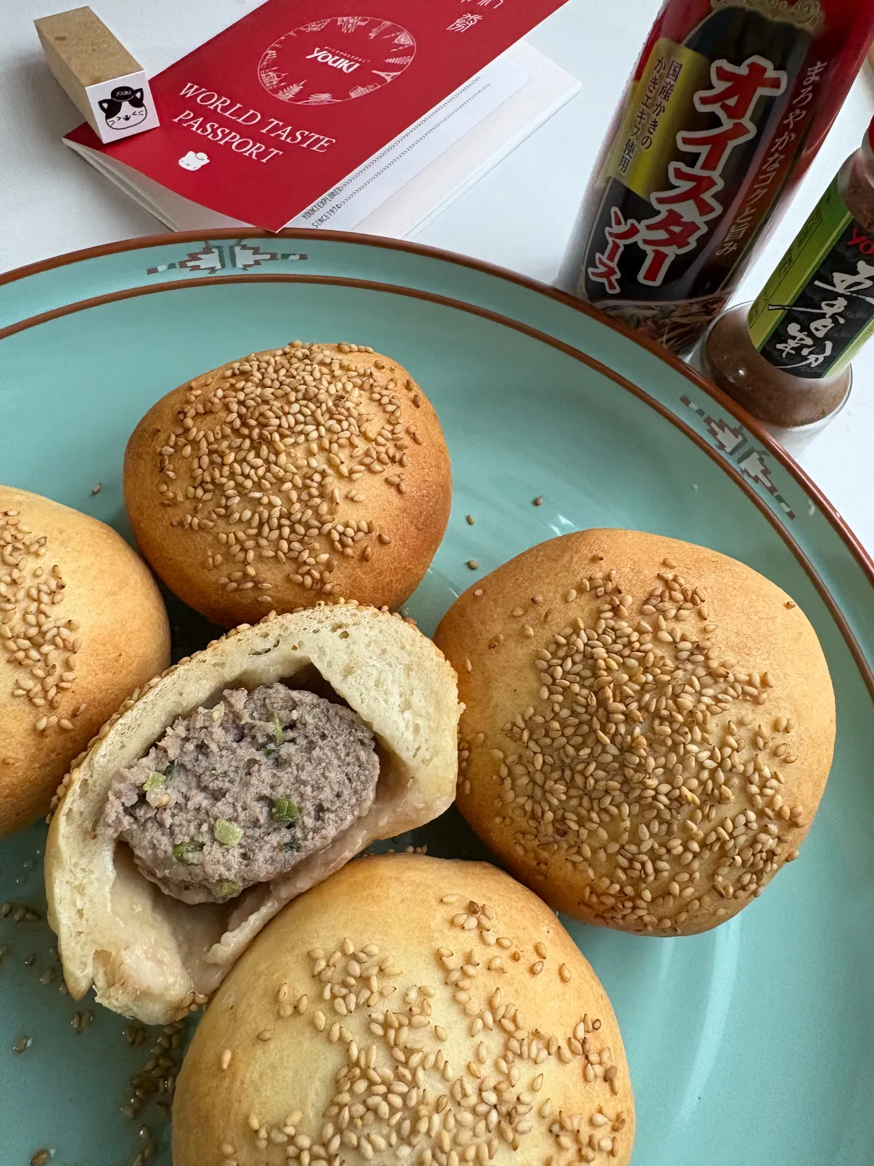 葱たっぷりの肉あんをパンの生地で包んで焼いた胡椒餅
