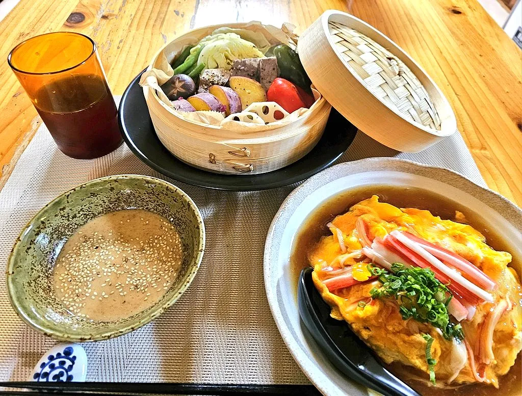 蓮根、椎茸、いんげん豆のせいろ蒸し」