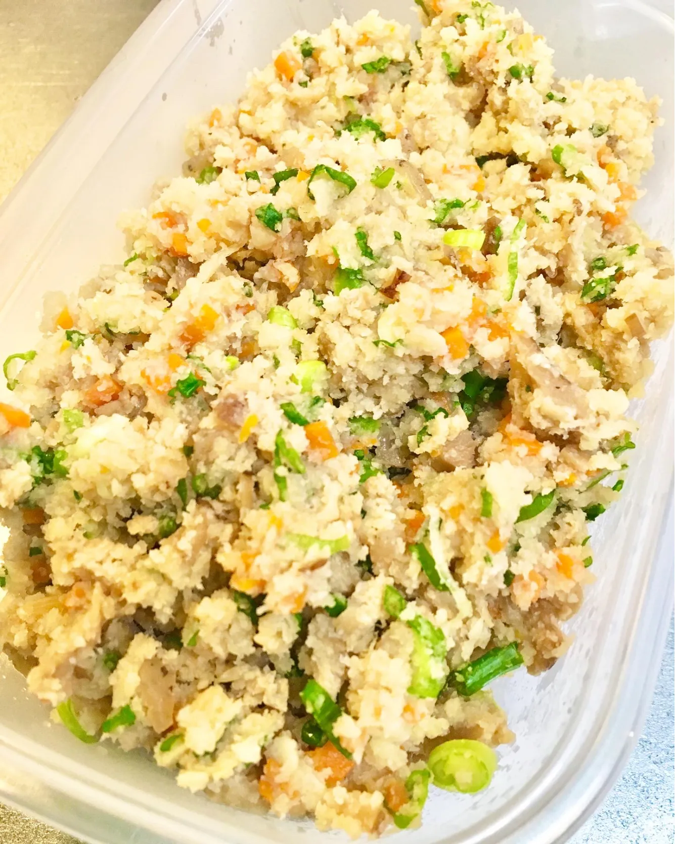 おからはフライパン弱火で30分ほど乾煎りします。野菜を味付けした物とお出汁も入れて味付け♪刻みネギをたっぷり入れます💕