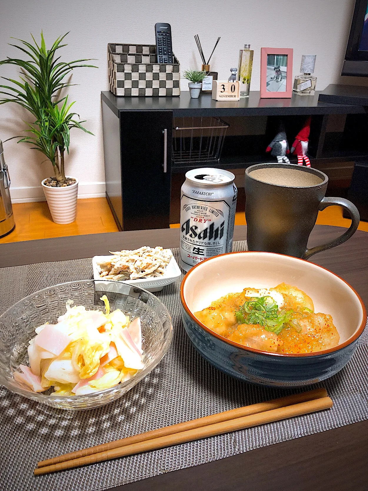 ○鶏肉のおろし煮🐓 ○白菜とハムのレモン和え🍋 ○ごぼうサラダ