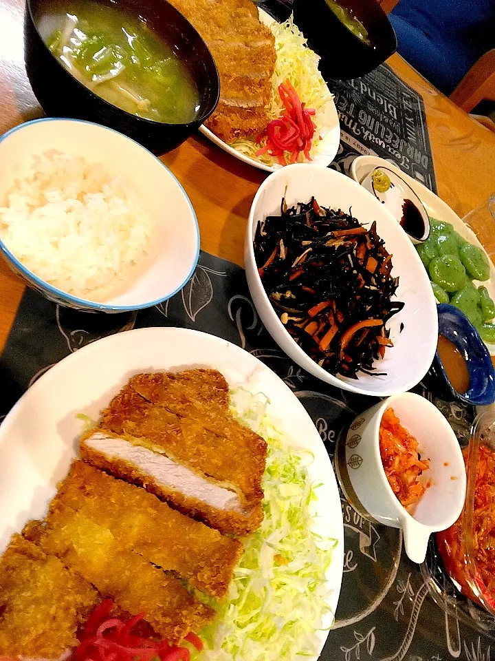 カツカレー、ポークソテー、自家栽培のししとう&青唐辛...