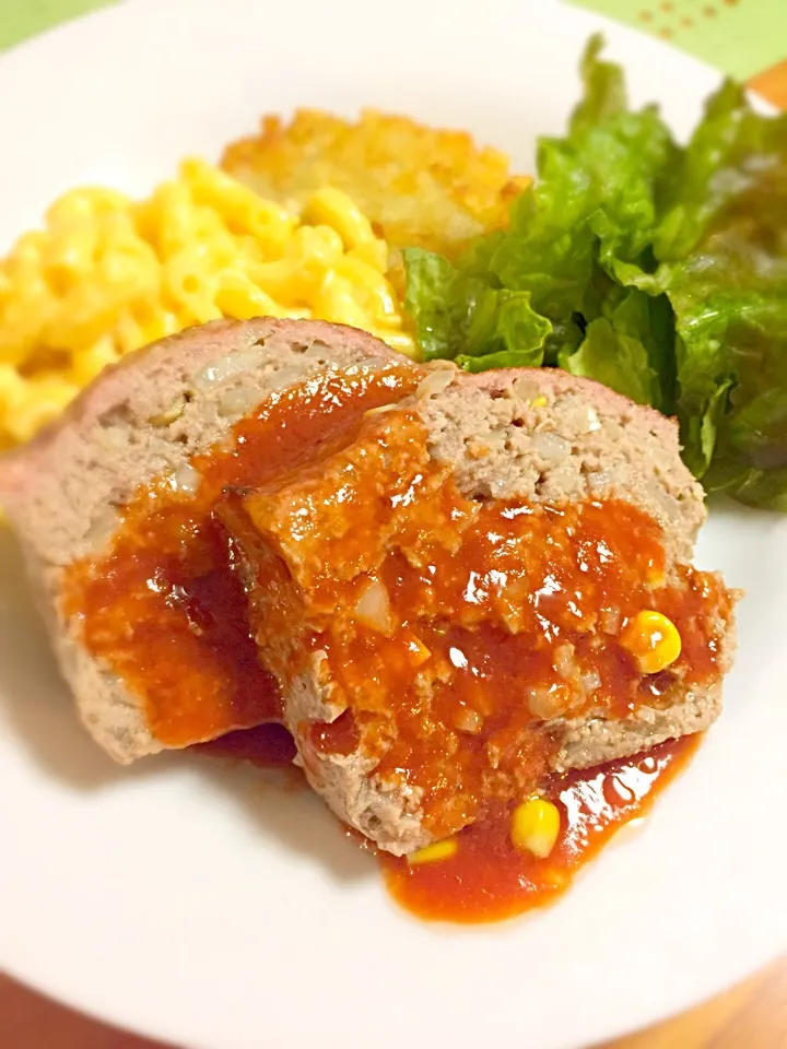 ミートローフとマカロニチーズ ハッシュドポテト