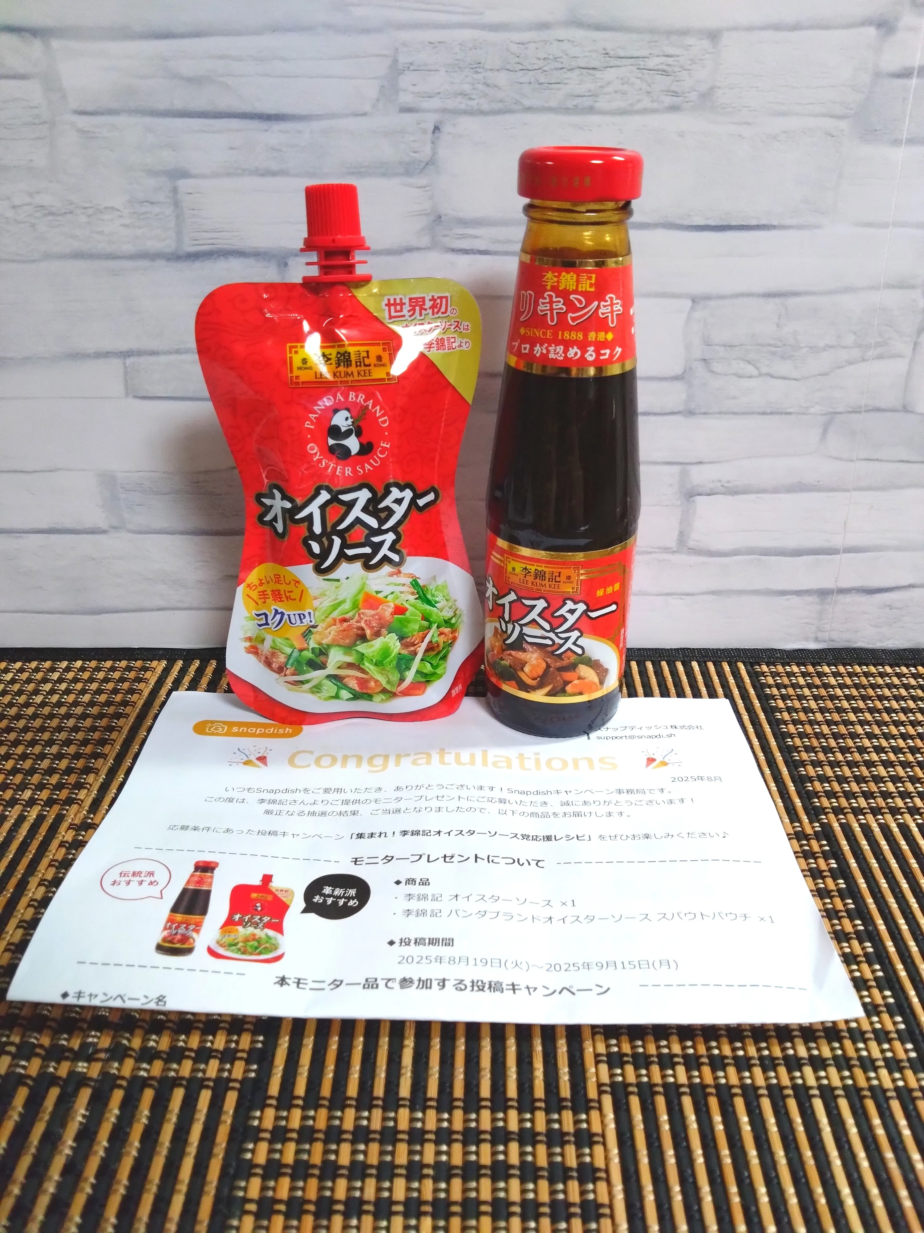 李錦記さんSnapdishさんのモニター商品オイスターソース2種類が当選しました