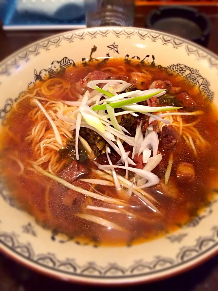 台湾酸菜と豚肉そば800円。台湾っぽい八角の効いた豚肉がゴロゴロで、酸味のある高菜みたいなものがアクセント。甘みのある醤油味にピリ辛が加わり、台湾の雰囲気が高くでおいしい。次は壁に写真付きでお勧めしている「福建ヌードル」食べてみよう。