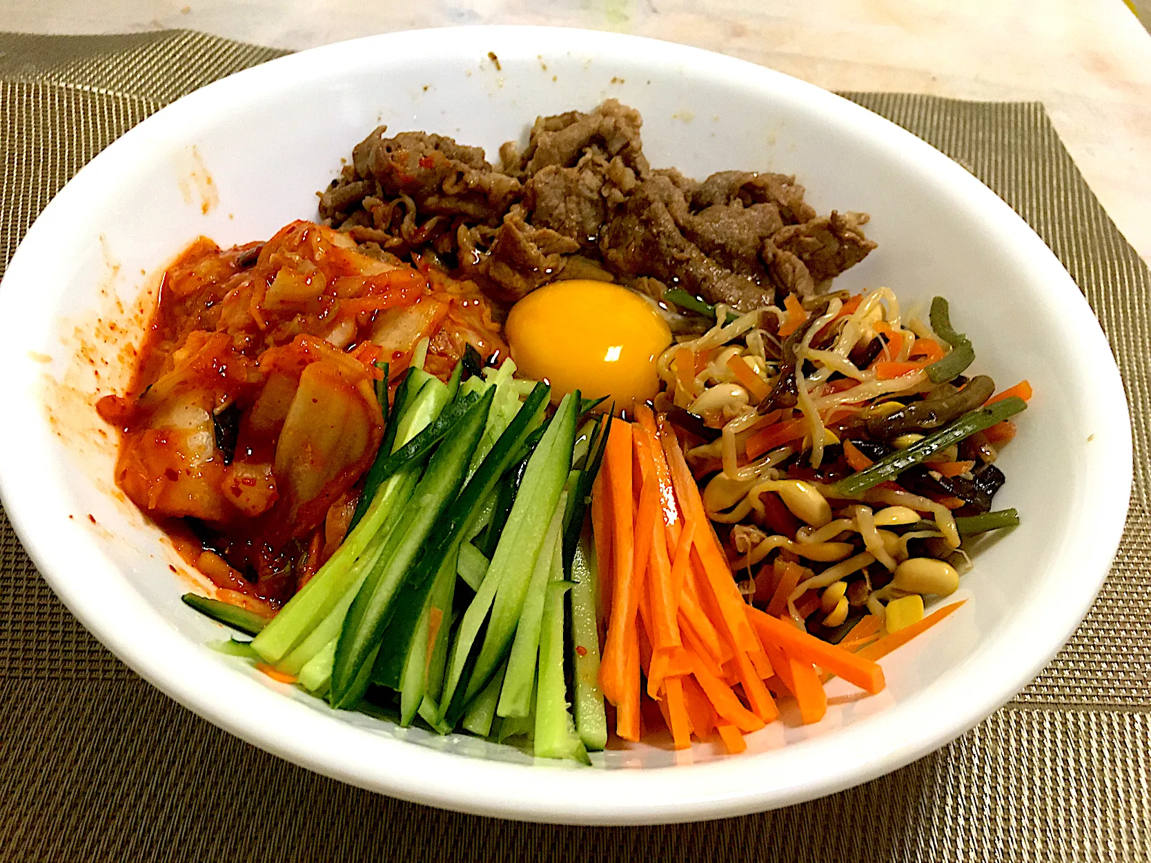 ご近所さんから頂いた紫大根のナムルも添えてビビンバ丼...