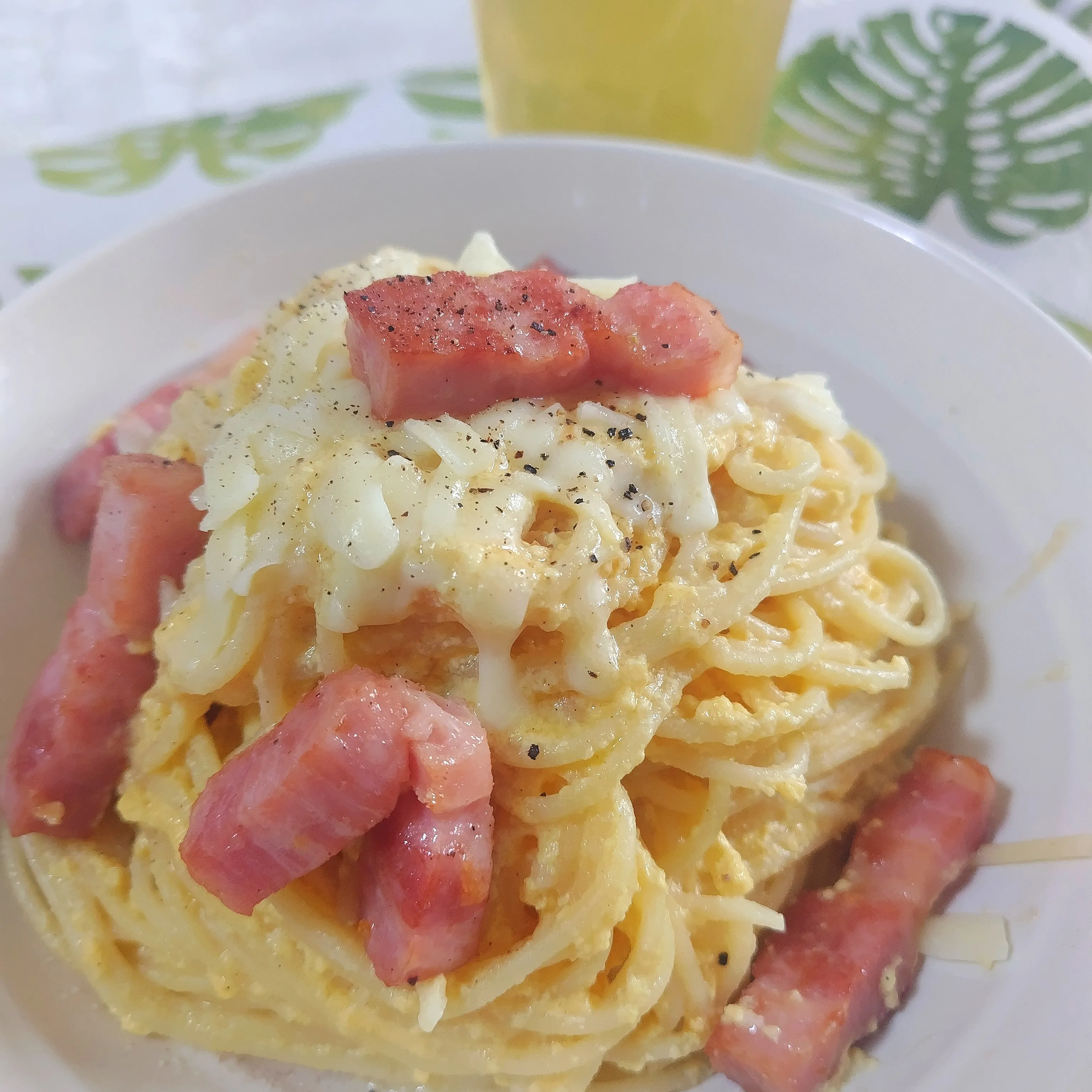 茹で上げた後パスタの温度をもう少し下げてから卵液と合わせられたらクリーミー仕立てになりますよ‼️‼️(*^^*)