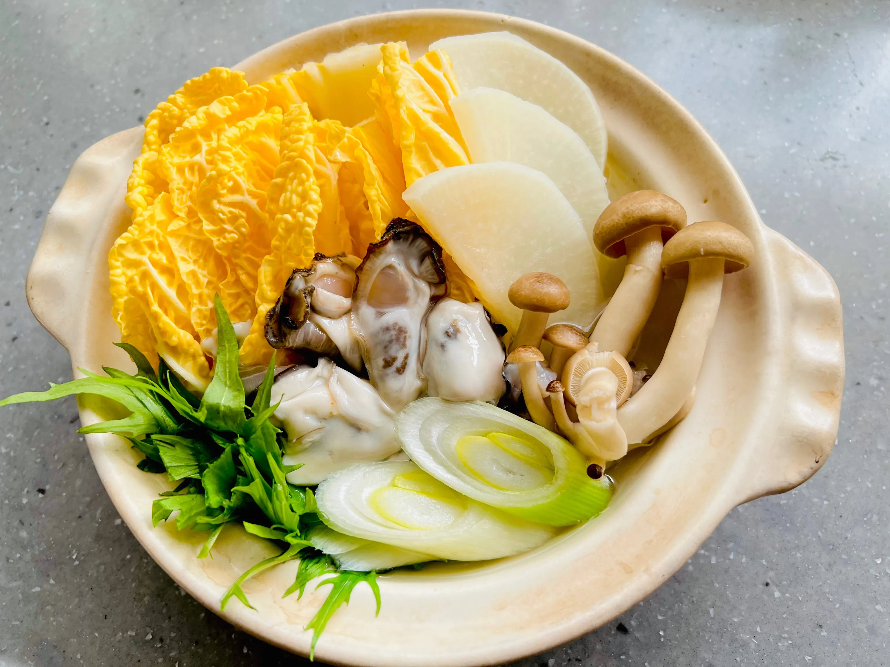プリプリ牡蠣とオレンジ白菜入りでめっちゃ美味しそう😋