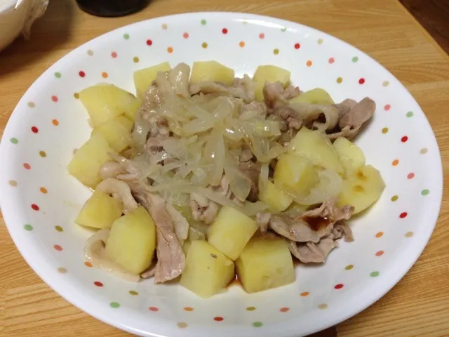 フライパンに料理酒を入れて豚肉、野菜などを蒸すだけの簡単料理!ポン酢につけて食べます。