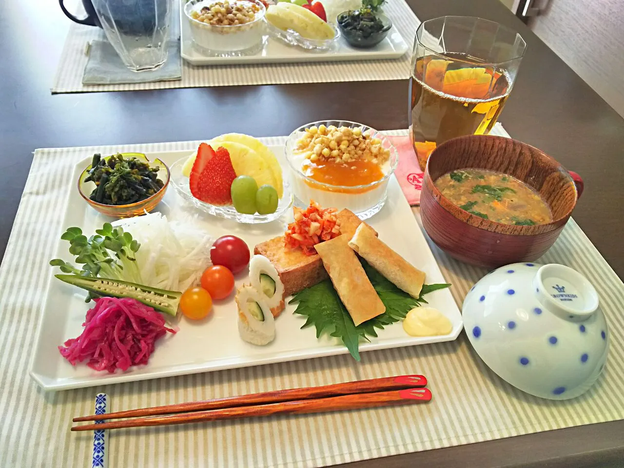 私も休日こそ朝ごはん作りますが、平日は晩ご飯の残り物ですよー笑 この朝ごはんも、ほとんど前日の残り物で構成されております(*´罒`*)