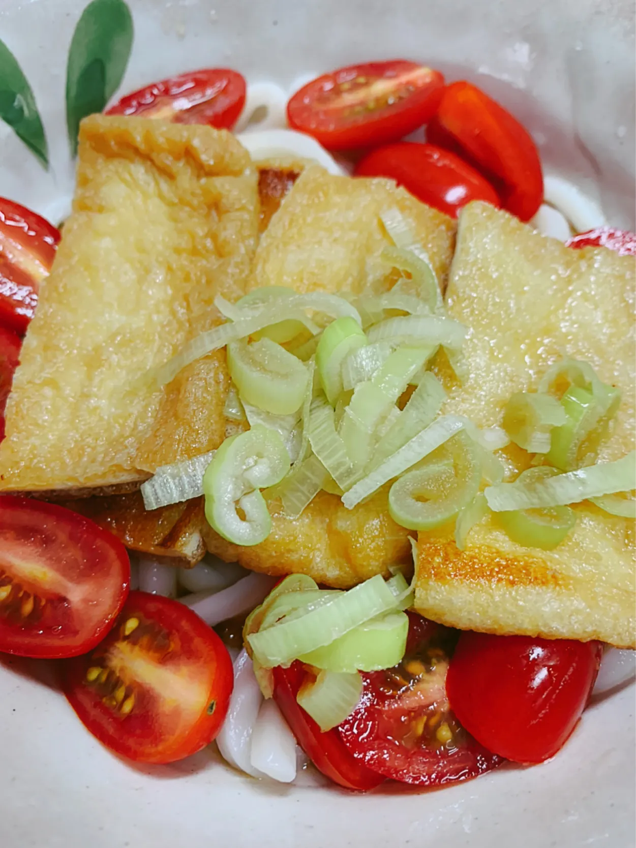 冷凍うどんと油揚げで ひやあつ きつねうどん