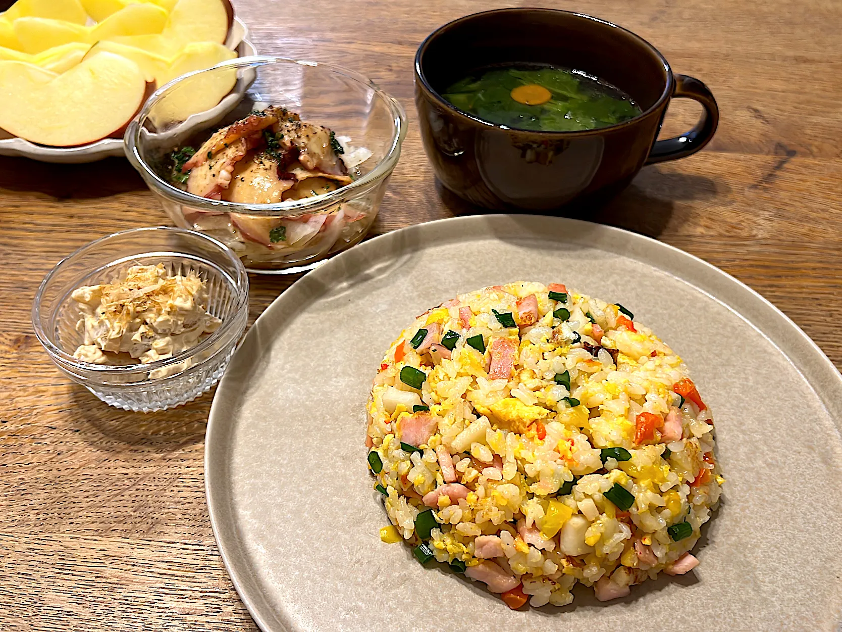 #ロースハム のはじっこと#蒲鉾 の残り、#豚の角煮 で出たラードで#チャーハン
