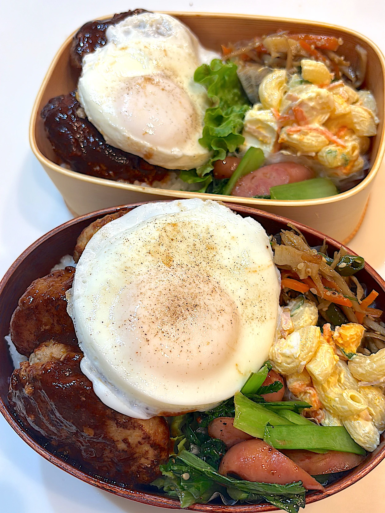 昨日のハンバーグをお弁当用に作って楽々なお弁当でした!今日もボリューム満点で蓋が閉まりません🫨
