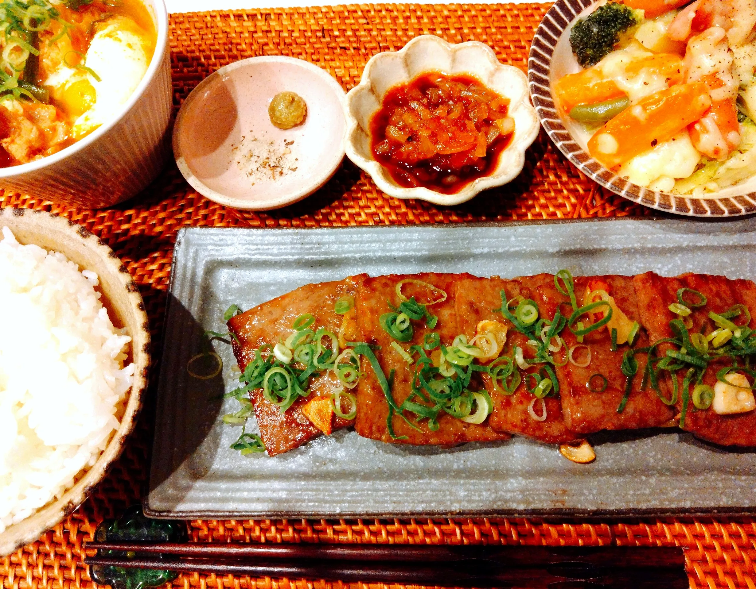 ステーキなのでポタージュをと思ってましたが、お昼に大量にチゲスープを作ってしまったのでチゲスープに笑