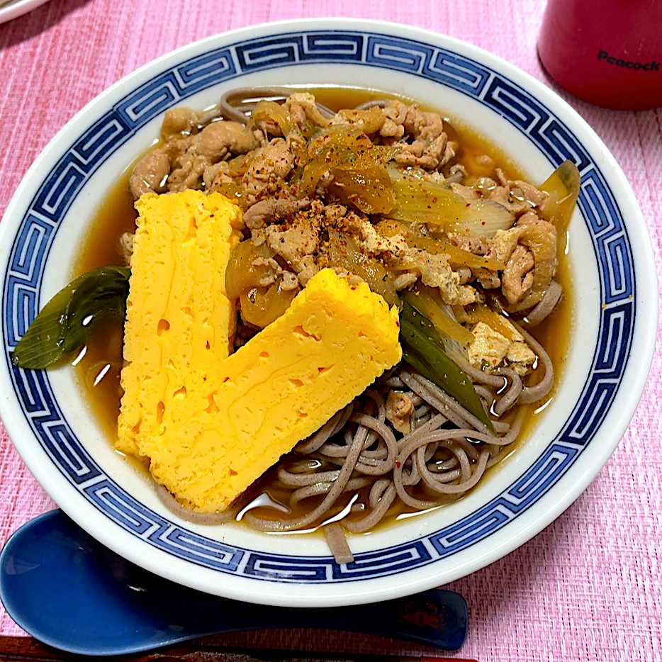 #晩ご飯 #蕎麦 #肉料理 #ネギたっぷり #たまご