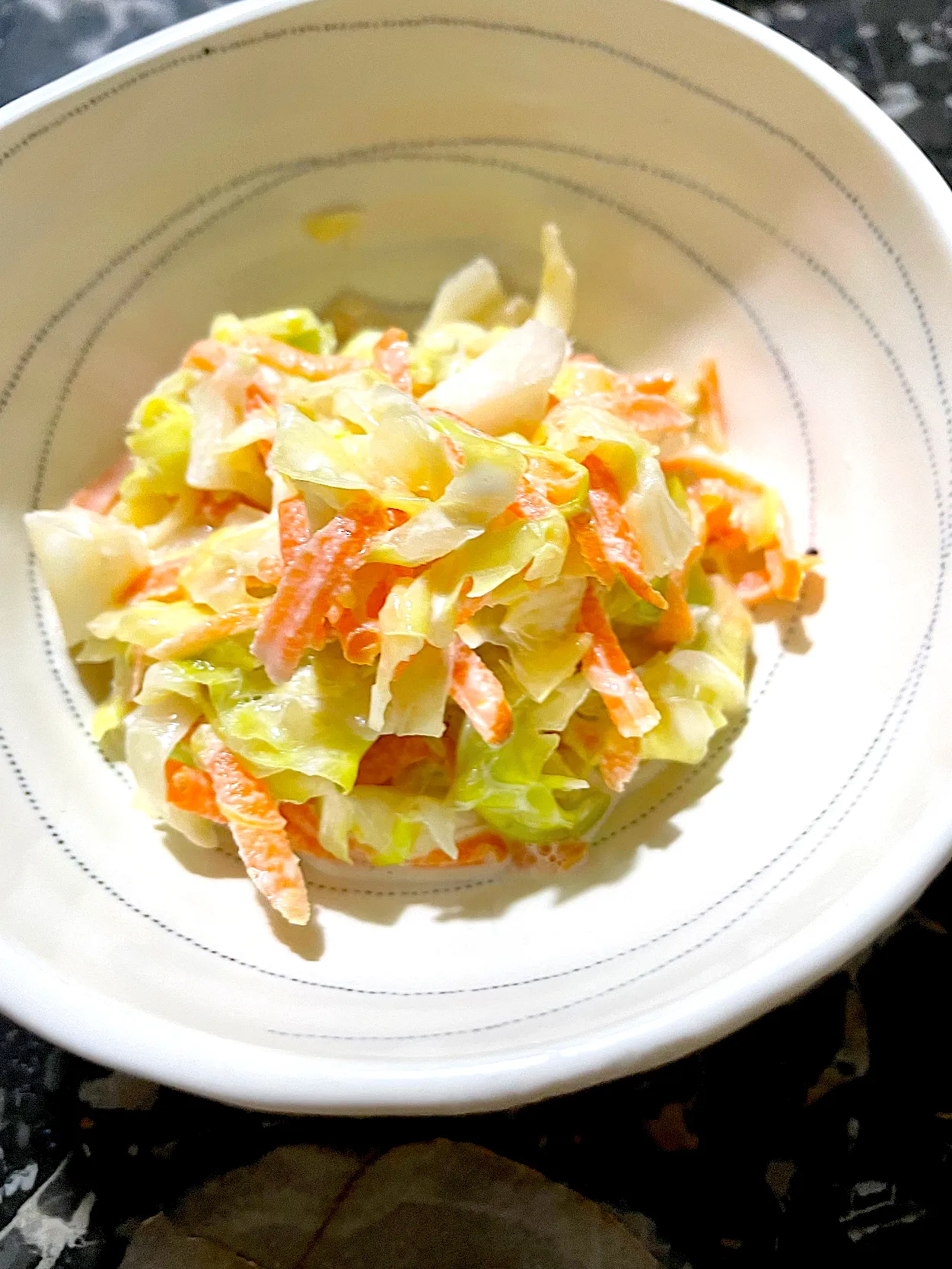 キャベツをたくさん買ったので、細かく刻んでコールスローサラダにしました。
