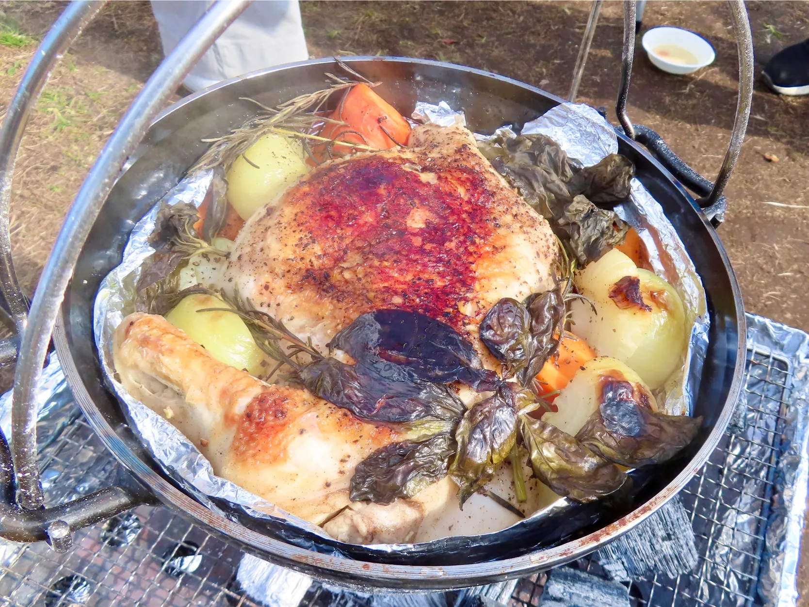 BBQ ダッジオーブンで丸鶏