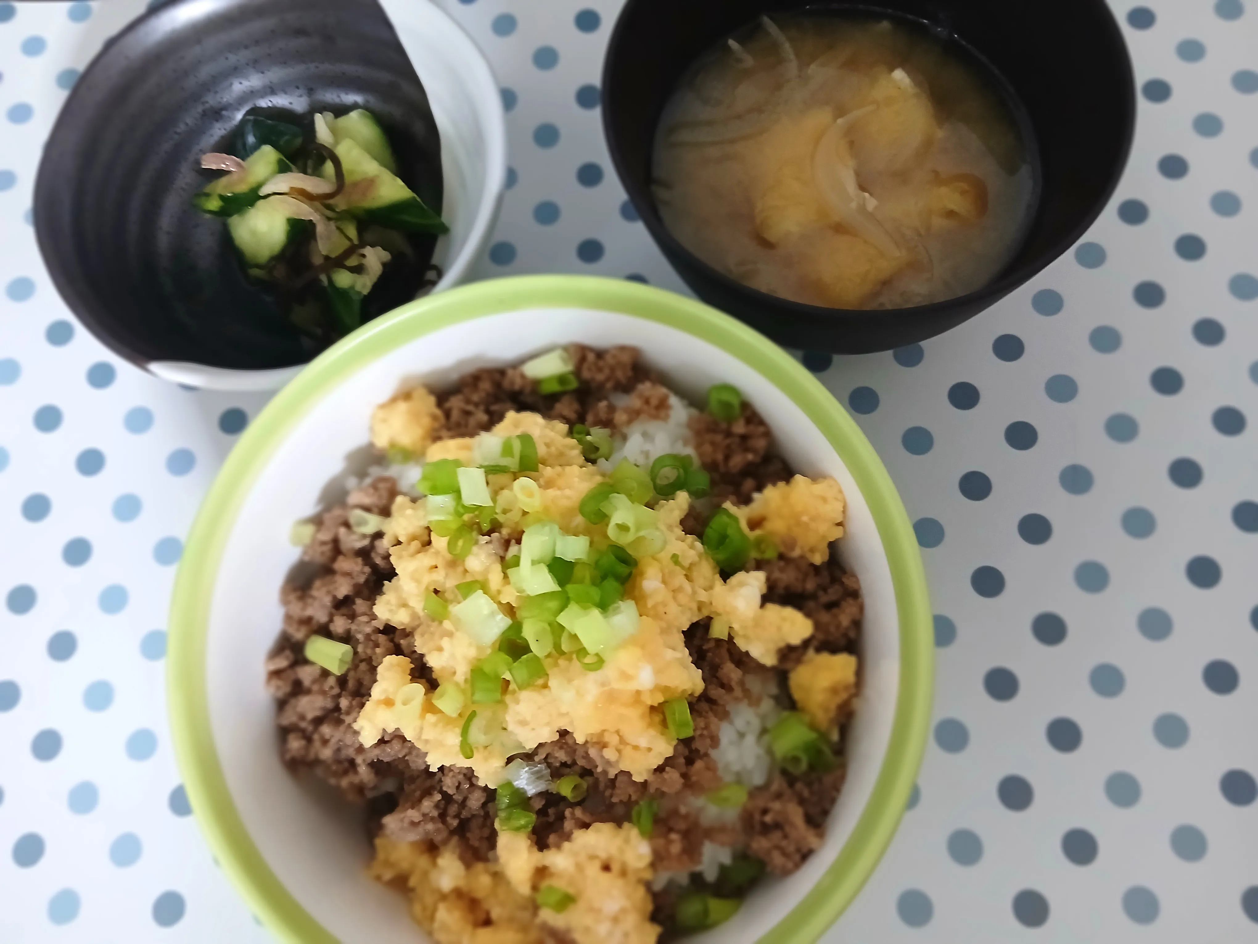 作りやすいからちゃんの置きランチから2色丼をチョイス😆✨