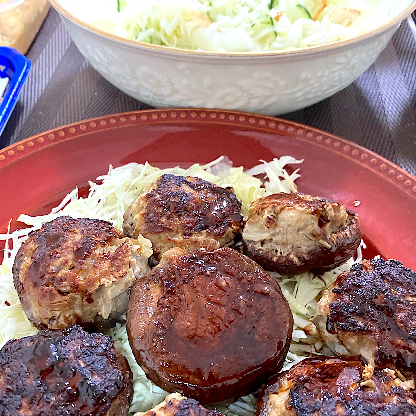 鮭ハラス明太ご飯と椎茸の肉詰め