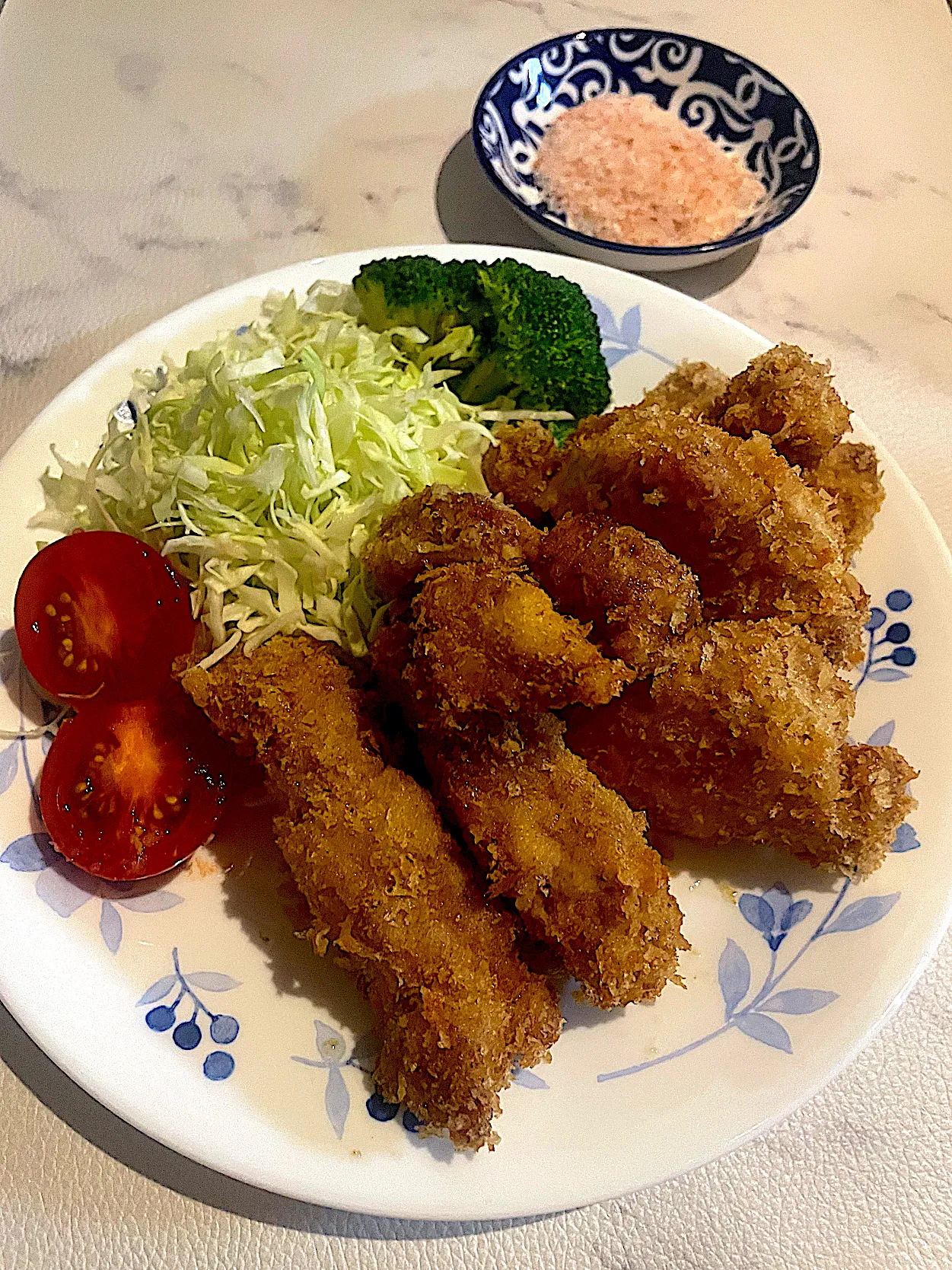 いつもはとんかつソースをかけて頂きますが今日はヒマラヤ岩塩を付けて頂きました