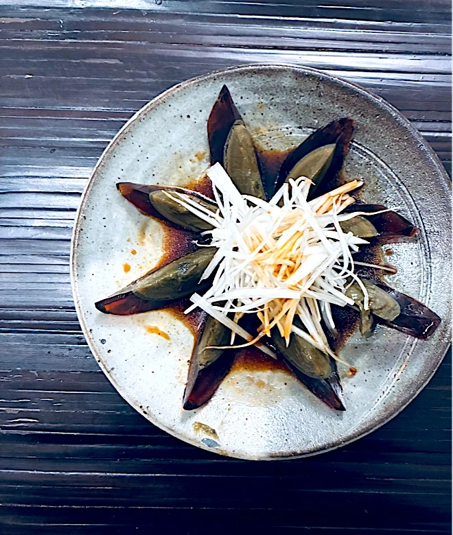 白髪ネギと黒酢醤油&ラー油でめちゃうまいっす😋